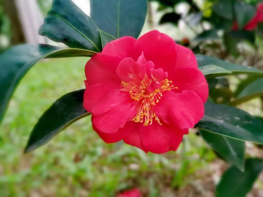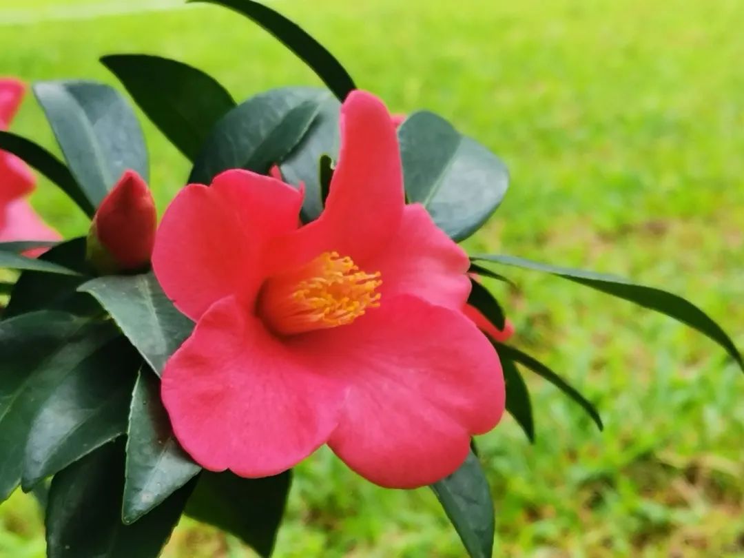 像杜鹃,娇艳俏丽;像山茶,端庄大气。杜鹃红山茶,花开一朵,端的是两风流。