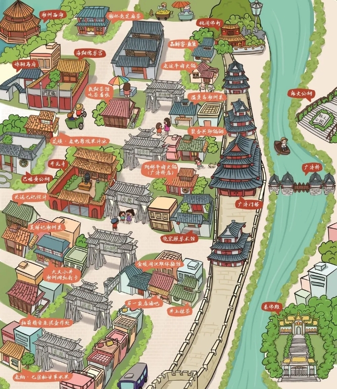 2020年10月12日,习近平总书记来到潮州,在广济桥、广济楼、牌坊街,察看文物修复保护、非遗文化传承、文旅资源开发等情况。这一桥一楼一街,是古城文化的代表。