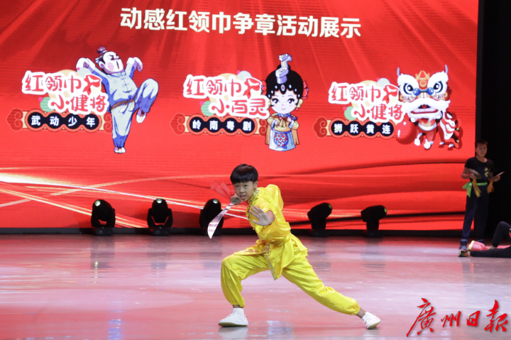 上午10时,在少先队鼓号声中,广东省少先队建队71周年主题队日活动正式拉开帷幕。来自全省各地市的少先队辅导员、少先队员代表齐聚一堂,共同观看了由100多名少先队员演绎的红色革命主题儿童情景剧《南国之光》,缅怀罗登贤等一批革命先烈,学习他们的英勇事迹,接受革命精神洗礼。