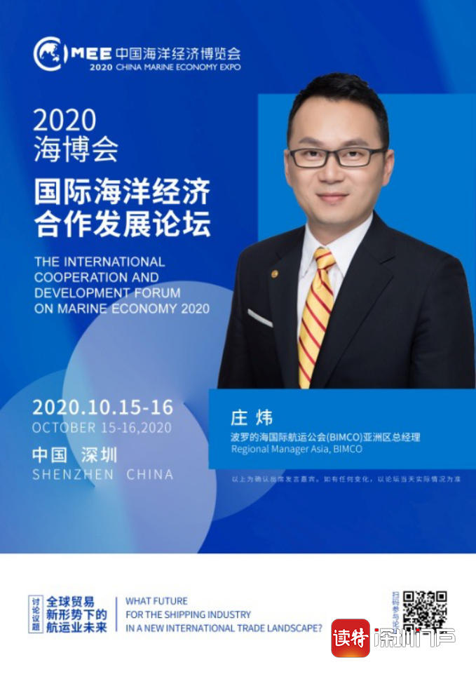 全球最重要的航运非政府组织(NGO)之一——波罗的海国际航运公会(BIMCO),将参加2020年海博会。期间,该组织亚太区总经理庄炜将作为嘉宾出席宏观论坛暨国际海洋经济合作发展论坛,并在“全球贸易新形势下的航运业未来”的环节发言。