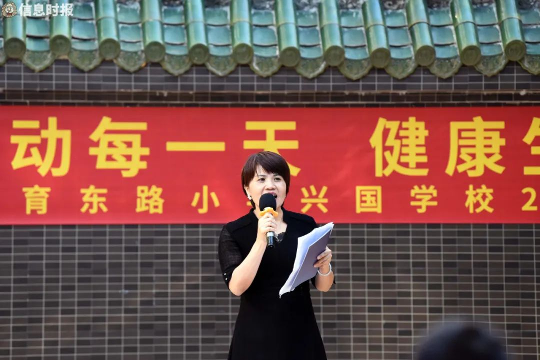 据体育东路小学兴国学校校长袁予湘介绍,体育节是体育东路小学的传统,今年已经是第十五届了。今年因为疫情原因在校内举办,但仍然保留了学生们喜爱的传统项目——跑、挑、投、掷等,同时为了增强学生体质,要求全员参与 “一分钟跳绳”项目。今年一大亮点是同期举办线上亲子运动赛,每个家庭可以自主创作运动项目,并拍成短视频,上传到学校平台,分享每个家庭的运动精神。