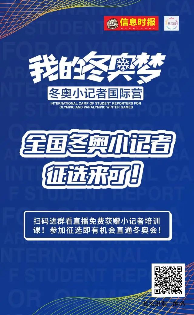 还在等什么?赶快来报名吧!扫码关注公众号“我的冬奥梦冬奥小记者广东站”,点击报名通道,就可以报名了,只要通过线上官方小程序的测试:奥运知识问答25题,即可进入复选!