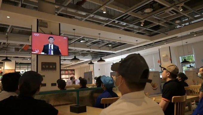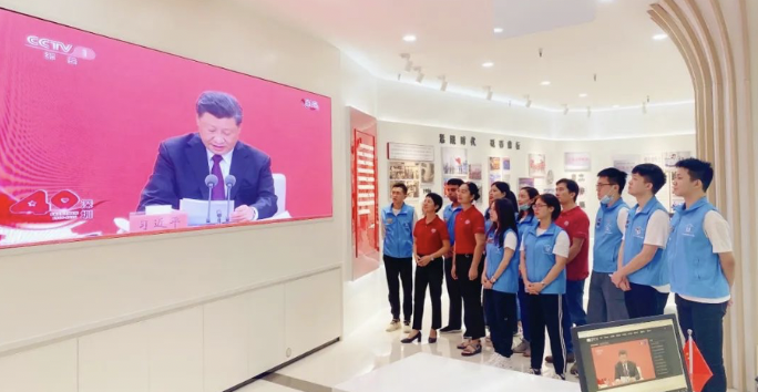 与此同时,深大校园内,各基层党委、各部门采取多种形式,利用电视、网络、手机、广播等多媒体平台,组织广大党员干部和师生员工收听收看庆祝大会实况。在学校办公楼、教工餐厅、学生食堂等多处播放大会直播的电子显示屏前,师生们座无虚席。大家认真观看,仔细记录,全神贯注,深切感受大会热烈氛围,深入领会总书记重要讲话的核心要义与精神实质。