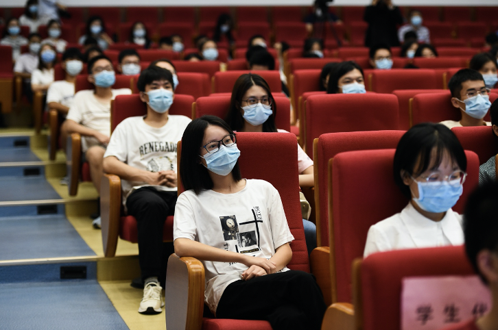 深大校长李清泉和200余名师生代表在深大国际会议厅内集中收看直播。