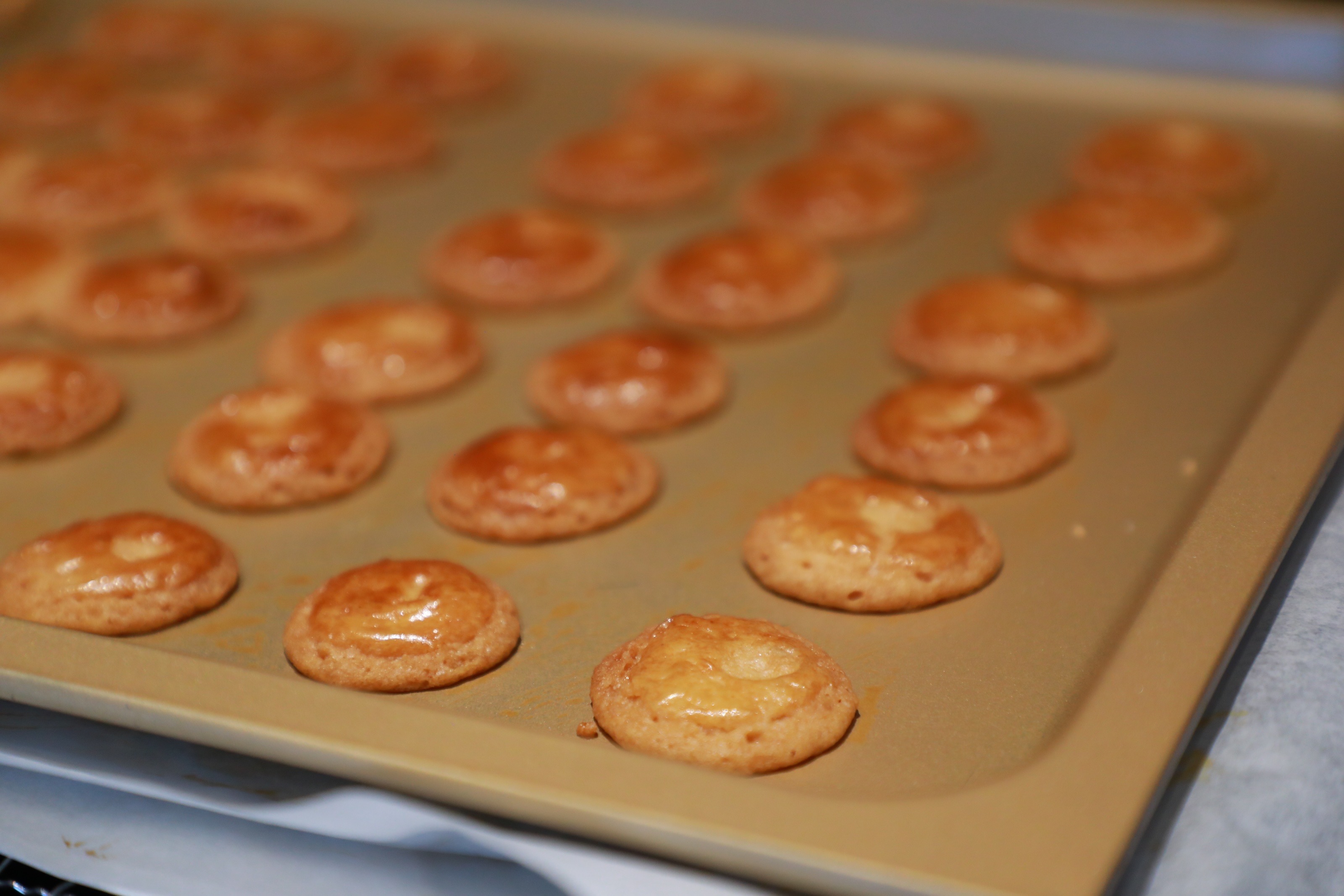 5.待做好一盘核桃酥后,在每一个核桃酥上均匀扫上蛋液,每件都要扫2次。后放入预热好的烤箱中,面火170℃,底火155℃,烤大约13分钟即可。(实际情况根据自家烤箱再做调整)