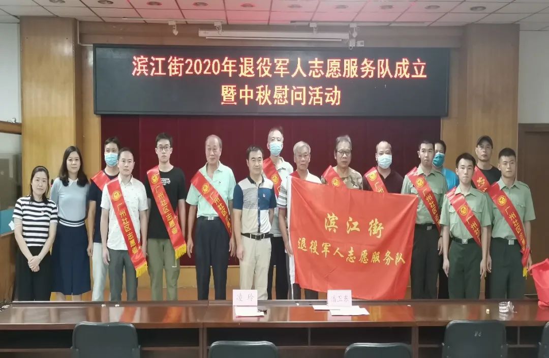 欢迎会后,滨江街道举办了2020年退役军人志愿者服务队成立暨节日慰问活动,活动中3名退伍军人在活动现场志愿加入服务队伍,并为12名“老兵”志愿者佩戴绶带。