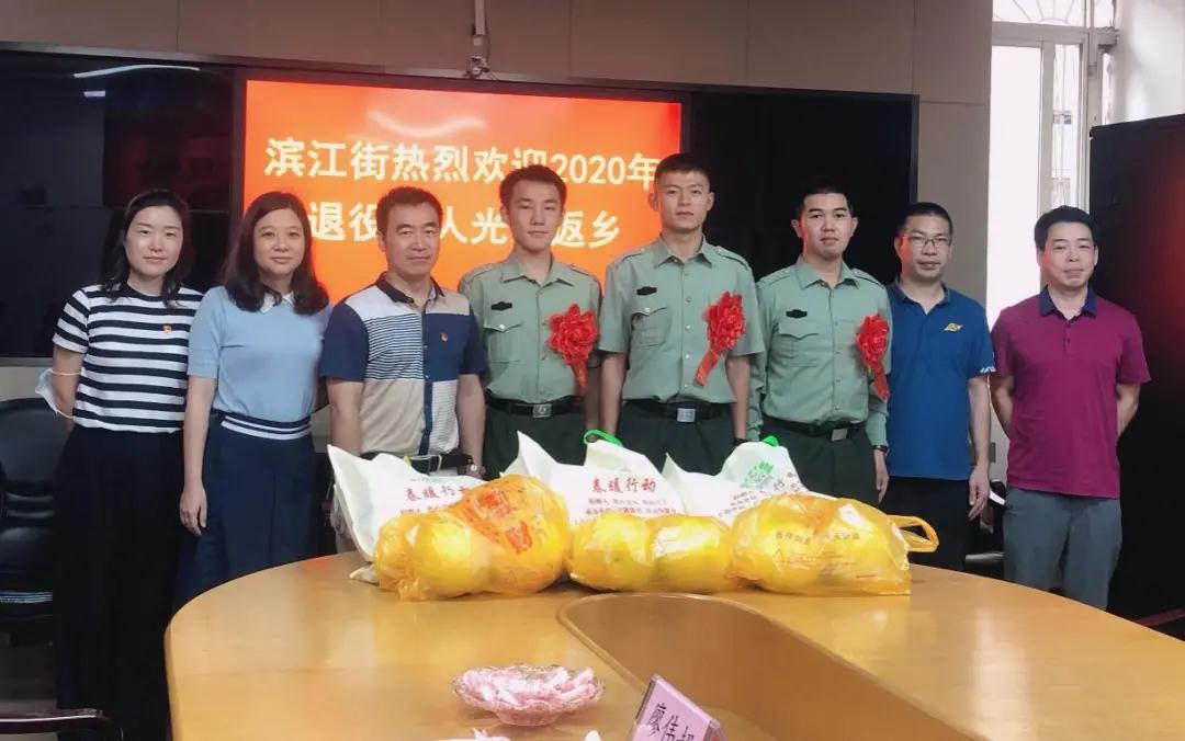 退伍不褪色,返乡立新功。近日,滨江街道举行了简约而隆重的2020年退役军人返乡欢迎仪式,迎接3位2020年退役士兵光荣退役归来。