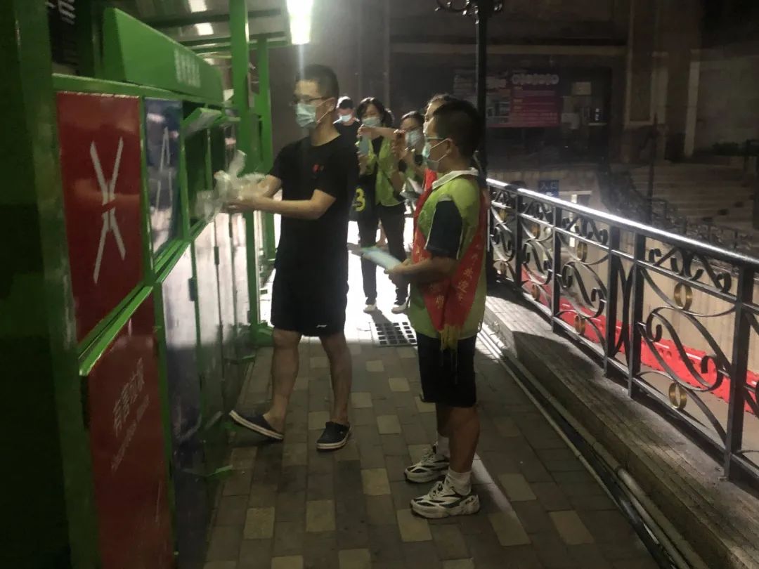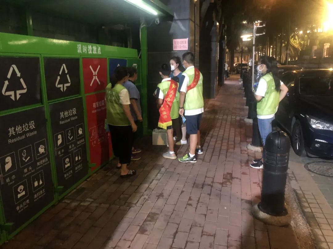 考虑到小区住户密集且集中,在去年撤桶前期,翠湖社区居委会和物业公司在征求居民意见后,在小区中设定了9个定时投放点和3个误时投放点。同时,社区也通过在小区公共区域张贴宣传海报、上门派发垃圾分类宣传资料、在微信群发布宣传资料等方式,扩大垃圾分类工作宣传力度,培养居民对生活垃圾进行分类投放的环保意识。