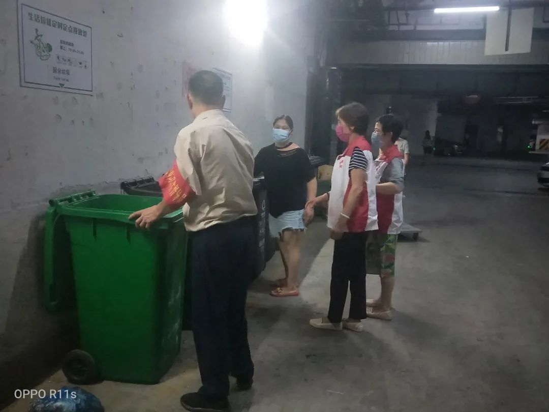 为了兑现对居民的承诺,翠湖社区居委会和物业公司携手做好小区环境卫生工作。物业公司在每个投放点都安排了固定的负责人,工作人员每半个小时对投放点进行一次巡查。发现垃圾桶满了,就清运到小区的垃圾中转房,保证了投放点的干净整洁。物业公司还安排了保洁员站桶,引导居民进行正确投放。