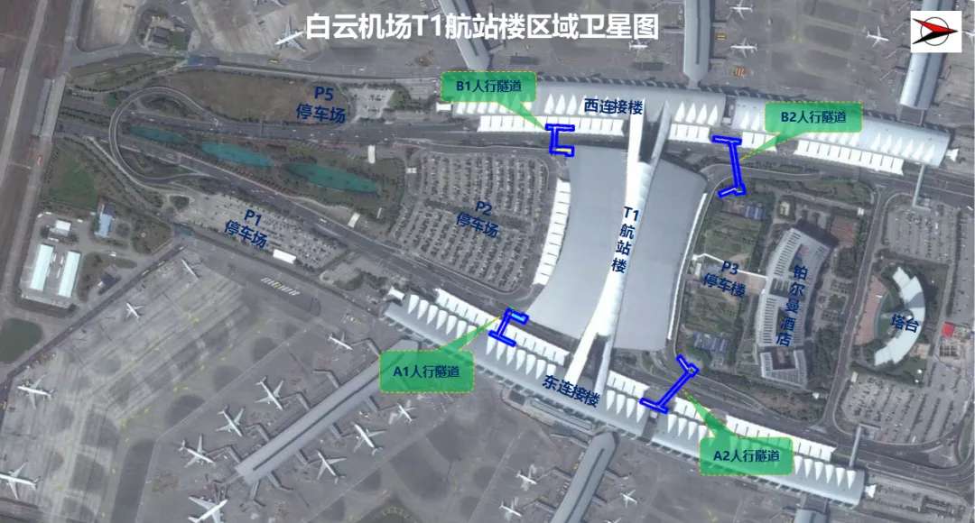 白云机场连接一号航站楼的A、B到达区与P2、P3停车场的地下人行隧道正加快建设推进。近期将开始管线迁改、竖井施工工作。四条隧道分别位于一号航站楼的A到达区和B到达区的南北两端,分别与P2、P3停车场衔接,建成后可以高效衔接T1到达区与两大停车场,届时抵达旅客步行取车或上车,仅需要3分钟至5分钟,极大方便出行。
