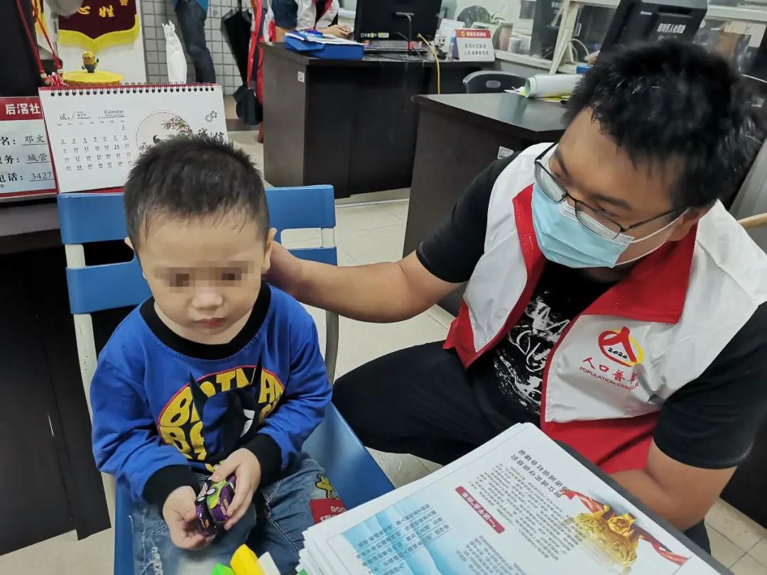 “陈书记,您好!我是后滘村的居民,这个小孩好像迷路了,您看能不能帮他找到家人?”10月13下午4点,后滘社区党支部书记陈敏强正在带领着社区党员忙碌地进行人口普查工作时,一位不愿留下姓名的热心市民抱着一个年约3岁的小男孩找到了他。