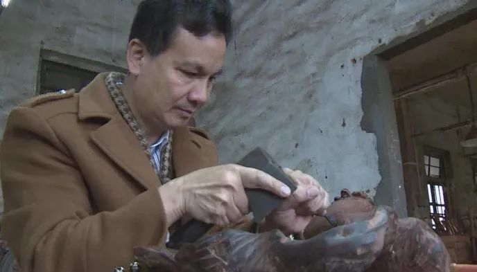 刘伯浩先生正在雕刻(来源:广州市荔湾区非遗保护中心、中共广州市荔湾区委宣传部)