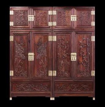 广式硬木家具有橱柜、床榻、桌案、椅凳等多个系列,形纹图案装饰丰富多彩,有龙凤狮鳌、四季花卉、田园景色以至古代英雄人物故事等,装饰效果明光闪亮,璀璨绮丽,造型雄浑稳重,风格繁密华缛,典雅辉煌。清代,广式家具更成为宫廷家具的主要来源,康熙年间的戏剧名家李渔,在游历广东观赏了紫檀、花梨木家具后,就已惊叹“制法之佳,可谓穷工极巧”;明末崇祯宫廷中,已有广式家具铁梨翘头案。