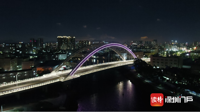 “想看夜空中的彩虹吗?”宝安沙井河特大桥迅速走红,它横跨沙井河,在夜空中,圆拱状的桥梁发出耀眼光芒,光影流转,好似城市夜空中的彩虹。沙井河特大桥将松岗和沙井片区连在一起,考虑到沙井河的通航要求,交通部门设计了一座跨径为182米的下承式钢管混凝土刚架系杆拱桥,造型优美的桥梁建好后,很多人特地过来拍照。