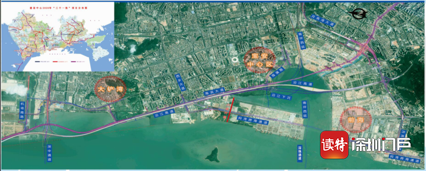 建设妈湾跨海通道,打造深圳首条海底隧道,加强前海和宝安交通联系,分流南山港区货运车辆。