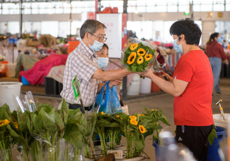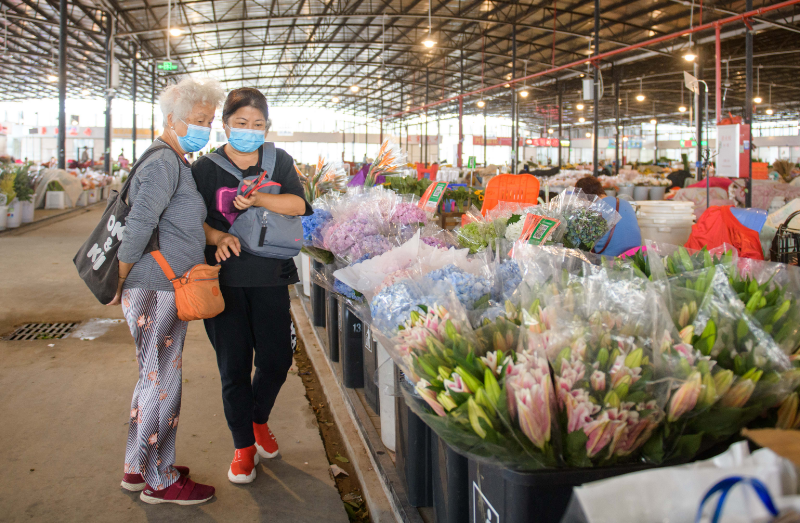 五眼桥西约岭南花卉市场B区(搬迁新址)鲜花品种丰富且新鲜。2019年以来,广州全市已有187个专业市场完成转型疏解