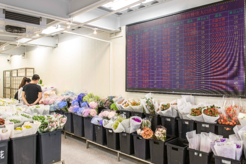 “我们这个线上平台在今年9月1日刚刚上线,目前已有30-40家入驻,对市场内的商户免收任何手续费。”王艳珊告诉记者,以前人们搭配一束花需要买很多束不同的花,平台上线后,客户可以在线上直接搭配、下单;在运输方面,平台规划了几条路线,分路线运输,很大程度节省包装运输成本;在技术方面,考虑到场内花农都是家庭经营,他们做直播要投入更多成本,平台也专门有一个团队负责提供资源。