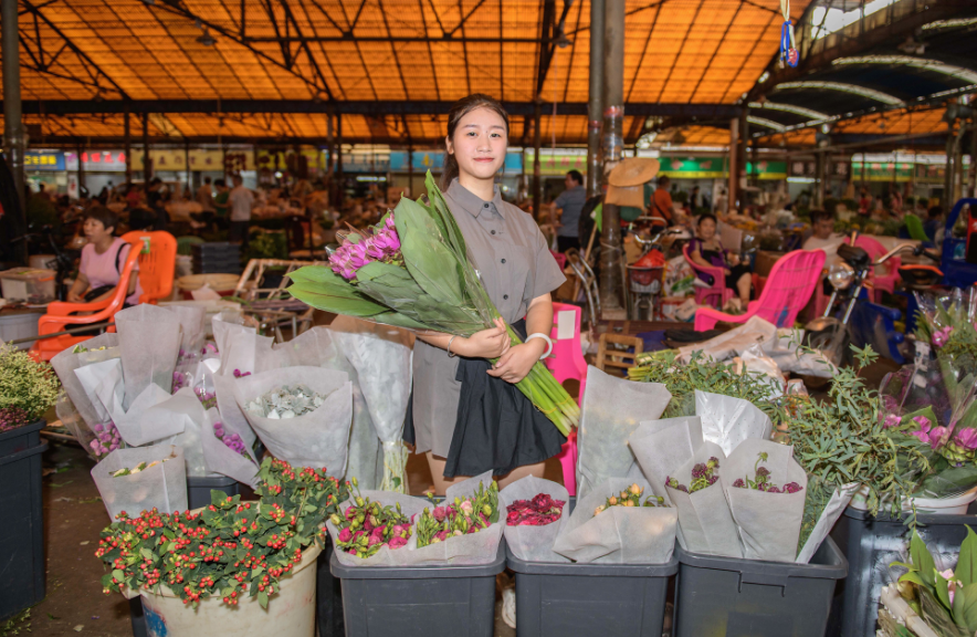 岭南花卉市场,全国乃至亚洲最大、功能最齐全的花卉综合市场。每天,来自全国各地的花商来这里看花、买花,这里也成为全国鲜切花最大的集散地。经历了一场疫情,现在不仅仅是花商,连个人消费者也能足不出户在线选货,由产地直接发货。