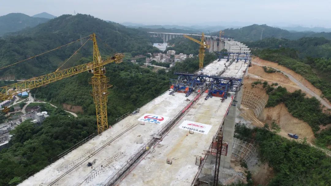 云茂高速独石特大桥全长2566.5米,为全线最长桥梁,大桥跨越7座山丘,桥梁墩柱大多位于陡坡地段,最高墩达74.83米。独石特大桥主桥为两处预应力混凝土连续刚构,项目倒排工期,采用挂篮悬臂浇筑施工,投入8套挂篮、4套电梯,严格控制合龙施工工艺和浇筑时间,32号墩-35号墩连续刚构已于10月10日晚上完成合龙,本次为19号墩-22号墩刚构合龙,全桥预计11月贯通。
