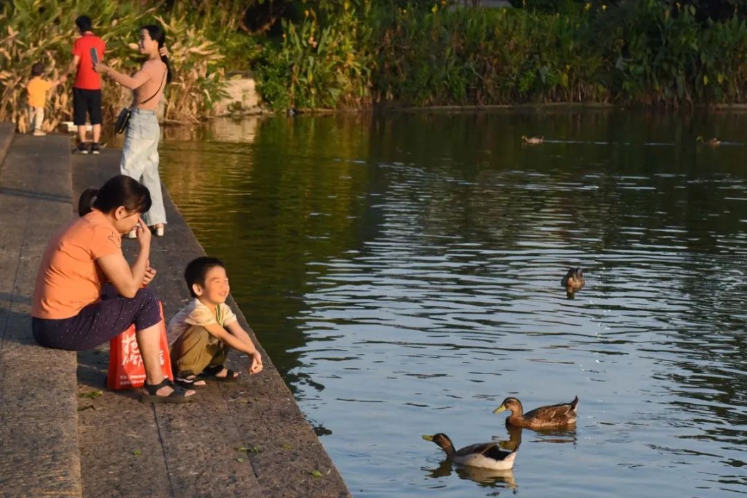 在这里,有一湾长期停驻一条“彩龙”的绿水,小朋友们可以快乐地欣赏鸭群戏水。