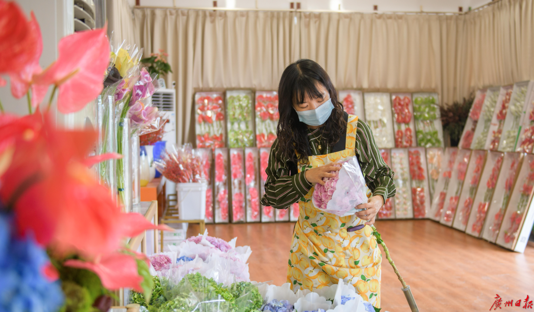 “市场今年2月22日正式复市,是广州市第一批复市的专业市场之一。但由于错过了情人节,复市后初期销量仅为同期三成左右。”五眼桥经济联社党总支副书记、岭南花卉市场总经理王艳珊表示,事实上,春节过后,紧接着几个月是情人节、清明节、母亲节,线下销售恢复缓慢,很多花都压在田里卖不出。
