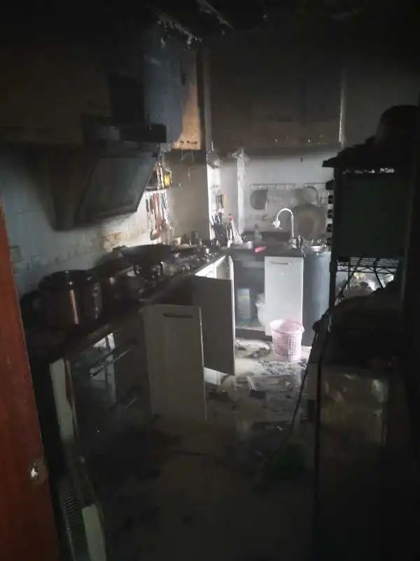 大约15分钟后,消防到场处置。经过检查,该单元厨房被烧,其他地方没有被波及。除了女屋主手臂轻微烫伤以外,没有人员伤亡。