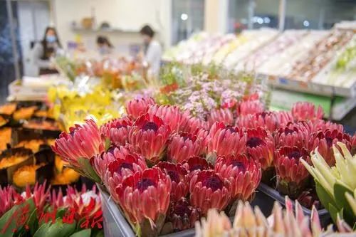 如今的岭南花卉市场鲜花区,道路宽阔平整,大小商户“百花齐放”,置身其中仿若在步行街上“行花街”。单碧莹的海翔花行是市场20多年的“老商户”,从最早的路边摆摊到老的花卉市场,再到如今升级的新市场,她告诉记者,批发市场的每一次搬迁都“再上一个台阶”。