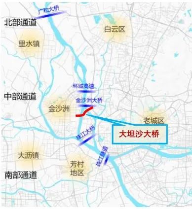 实际上,金沙洲新的过江通道已经规划多年。2007年,为了解决金沙洲日益严重的拥堵问题,《金沙洲综合交通规划》(2007)出炉,规划中金沙洲往广州方向自北向南将有沉香岛大桥(沉香大桥)、北环高速、金沙洲大桥、大坦沙大桥四个主要通道。但因各种原因,沉香大桥和大坦沙大桥一直未能开工建设。