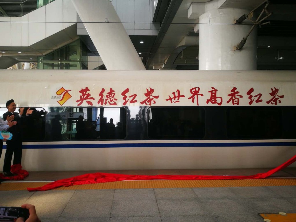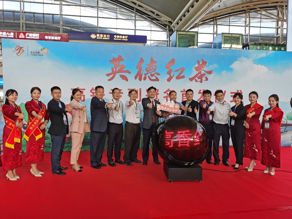 10月21日,“英德红茶”高铁列车冠名首发仪式于广州南站举行,冠名“英德红茶”的高铁列车今天执行G1184次广州南开往宣城。