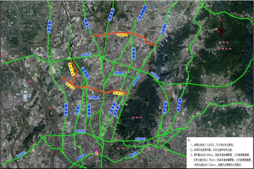 石井大道呈南北走向,南起于黄石路,北止于华南快速,线位与现状道路一致。城市主干道,全长 2.75千米。