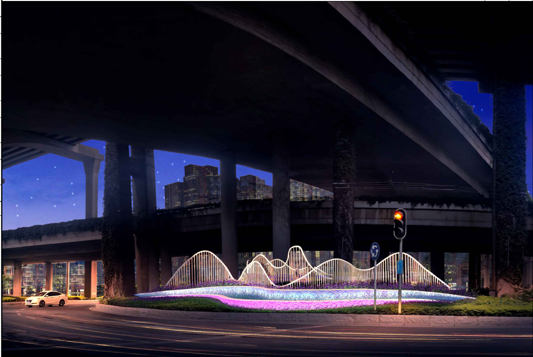 ▲ 黄石路与机场路交叉口,桥底交通岛效果图