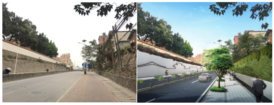 ▲ 石井中学边坡改造效果对比