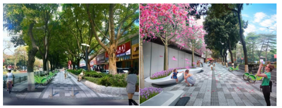 ▲ 石井大道慢行空间改造效果对比