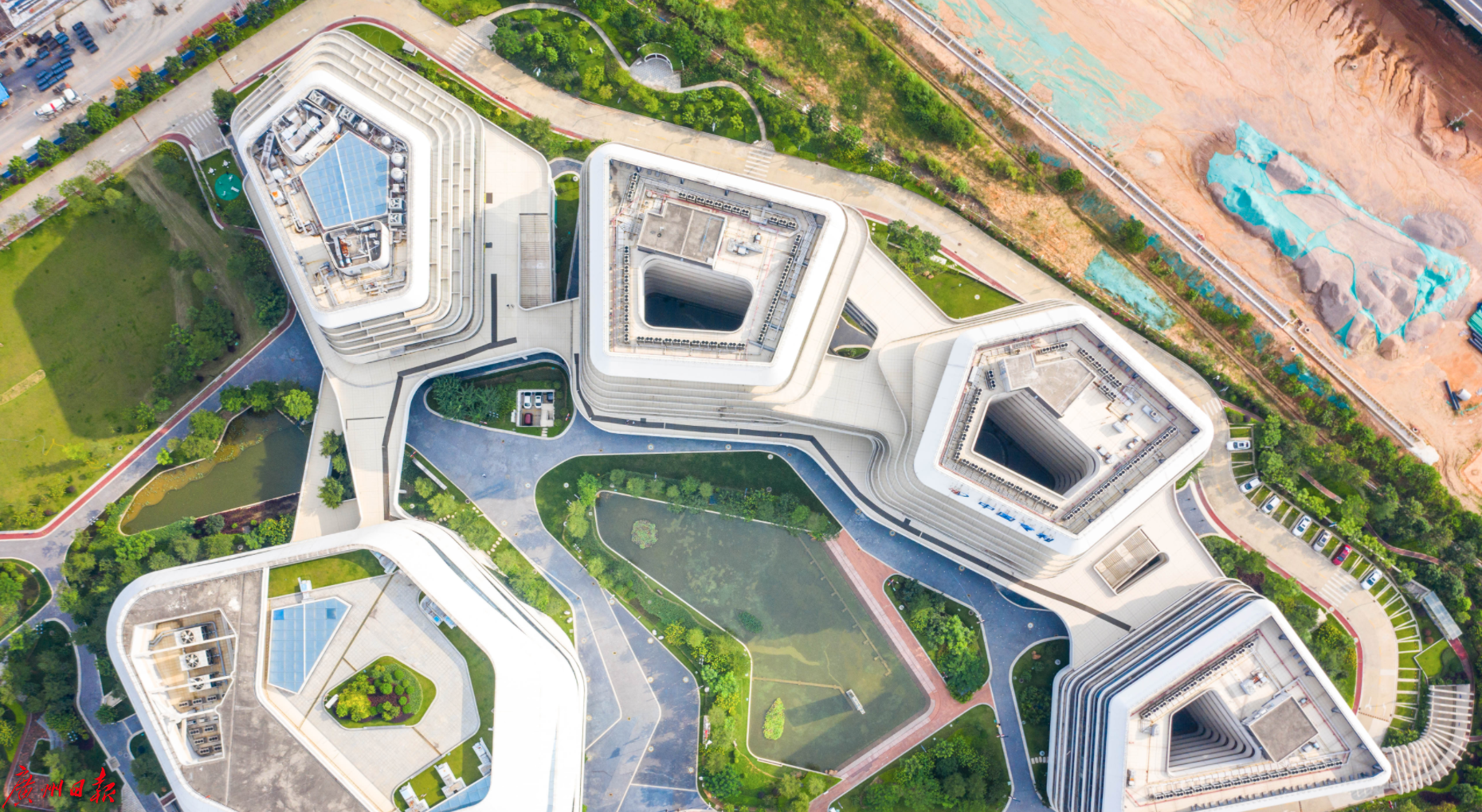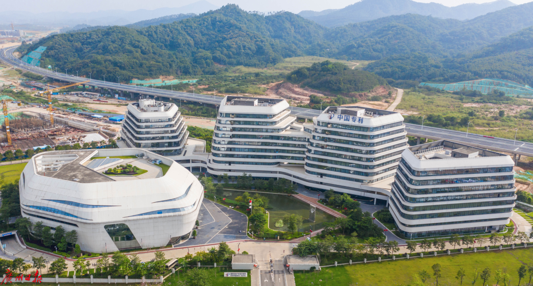 在知识城南起步区,依山而建的国家知识产权局专利局专利审查协作广东中心是广东省二星A级绿色建筑。