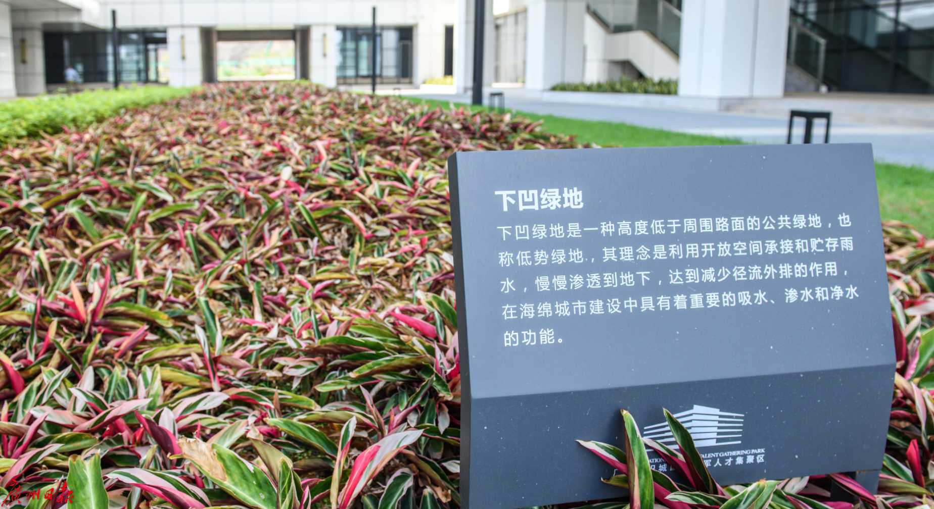海绵城市建设同样能起到为城市降温的效果,在凤凰湖畔的广州知识城国际领军人才集聚区,一期项目已经建成,这是集前沿科技研发、产业办公、文化休闲为一体的科技产业综合体、高端创新创业园区。在这里合理布局各类海绵设施,包括下凹绿地、旱溪、透水铺装等。中新广州知识城开发建设办公室有关负责人告诉记者:“水体能起到降温效果,知识城除了有凤凰湖、九龙湖两大水体外,散落在区域内的大小‘海绵’同样起到储水、降温的作用。”
