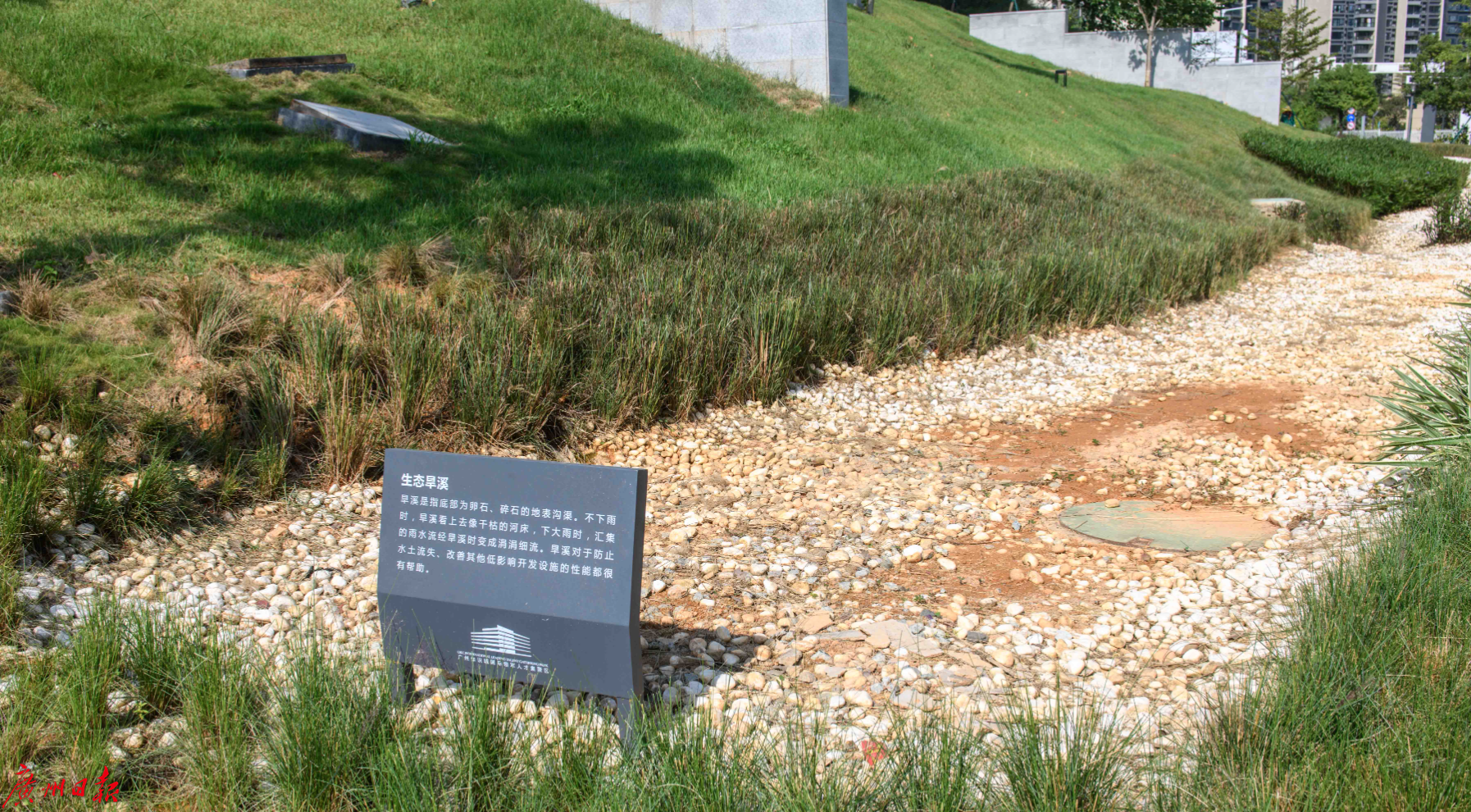 海绵城市建设同样能起到为城市降温的效果,海绵设施:旱溪