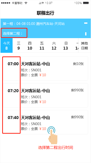 4、选择第二程的出发时间