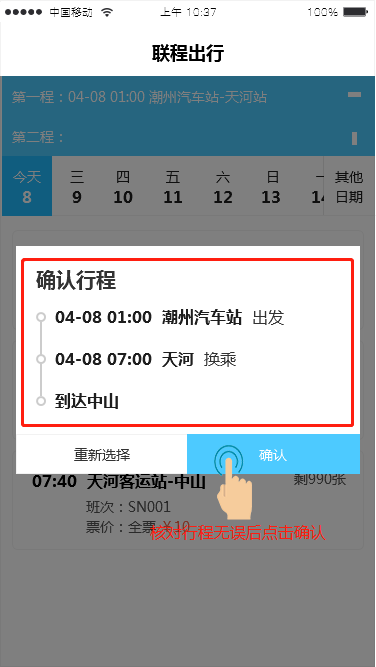 5、确认选择的行程