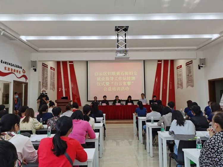 为发挥妇联职能,积极打造女性创业就业工作品牌,10月23日上午,白云区妇联、黄石街妇联和仕馨学院在黄石街羊城家政服务站举办黄石街妇女就业指导工作站挂牌仪式暨“白云家馨”公益培训。