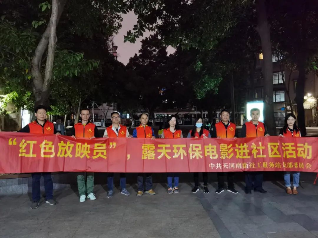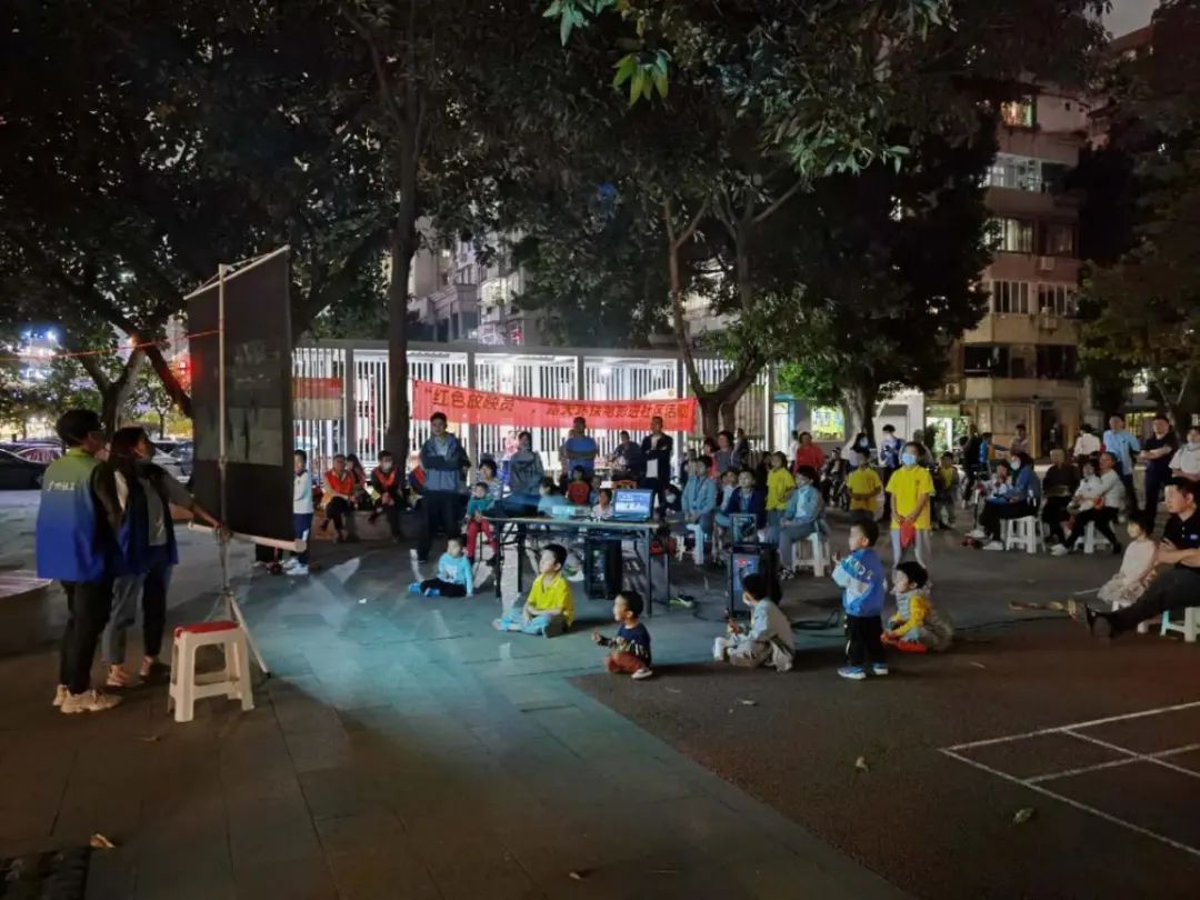 看露天电影,为快乐周末加分。10月23日晚,天河东社区德欣小区广场又迎来了别样的周末快乐时光:“红色放映员”——露天环保电影进社区活动。该活动由天河东社区居委会、广州市天河南街社工服务站支部委员会携手广州市交通运输局机关第五、第六党支部开展。