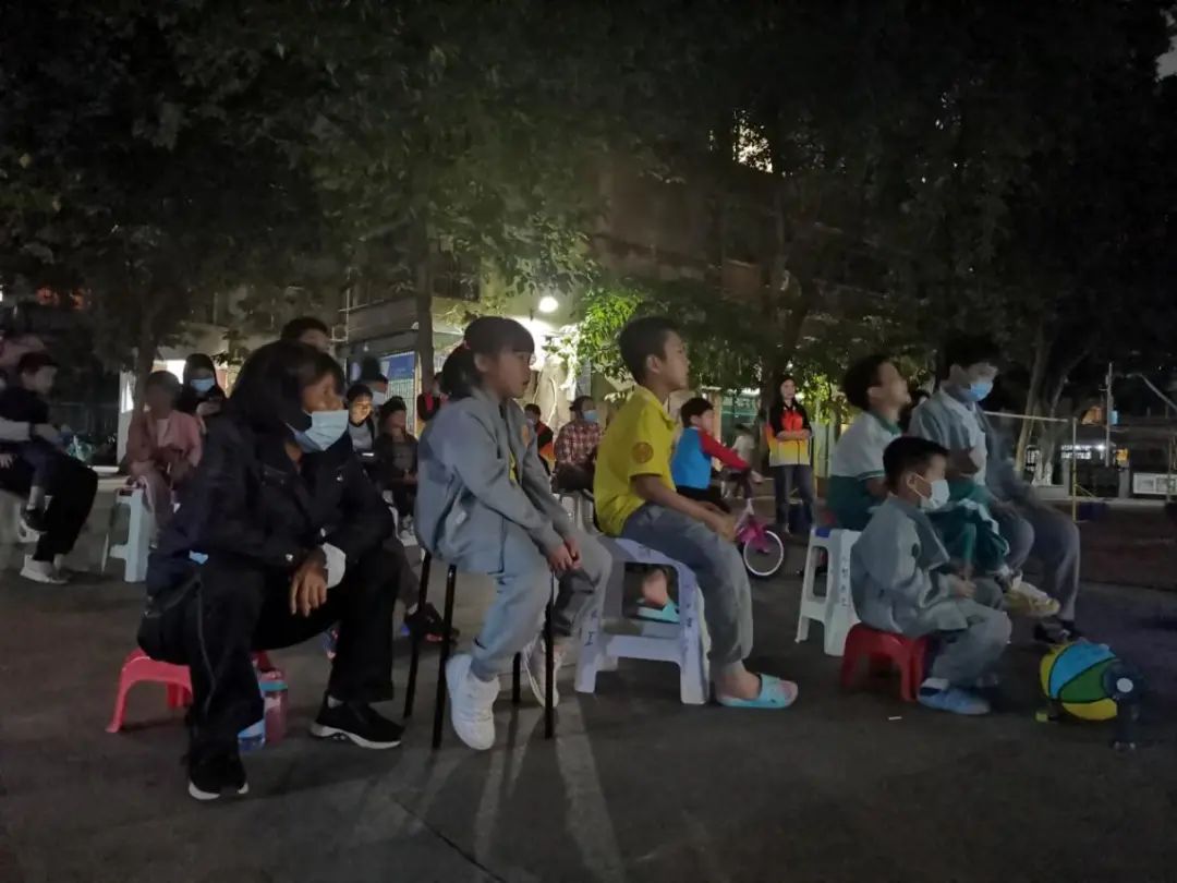 当晚播放了《我和我的祖国》,街坊们看得津津有味,笑声、赞叹声不时响起。