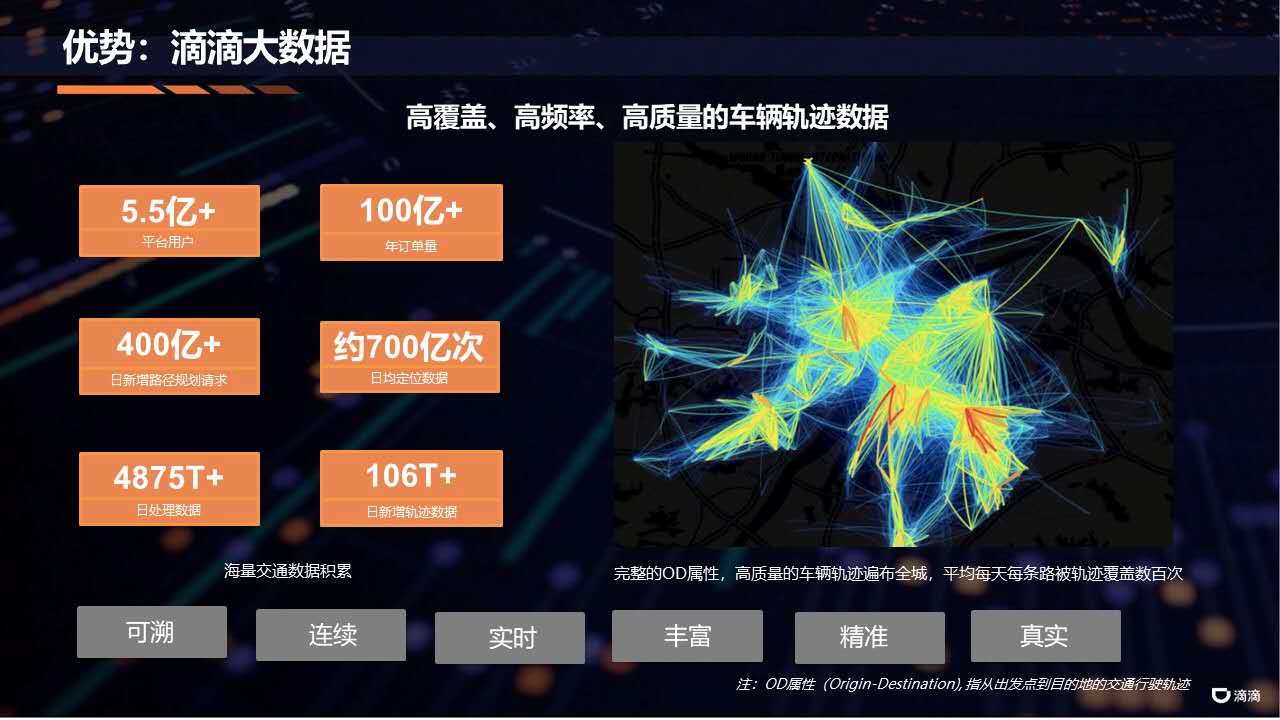 滴滴进入智慧交通领域的切入点是数据,目前滴滴平台注册用户已经超过5.5亿,每天处理超过106TB的轨迹数据,4875TB的综合数据。正是基于海量真实的滴滴浮动车大数据,以及对前沿交通模型优化算法的研究,滴滴以互联网+信控为概念基础,自主研发了滴滴智慧信控系统。