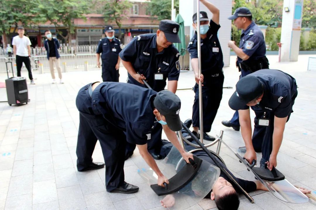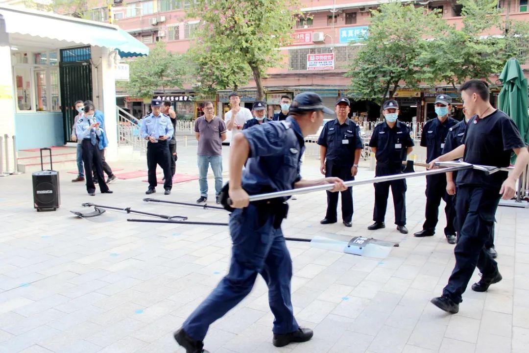 针对如何搏斗,天河区公安分局的警官们和全体教师、安保人员及家长志愿者们还一起进行了应急安保演习。