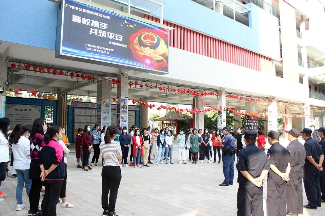 为进一步强化校园安全管理工作,提升校园安保应急处置能力,加强师生安全防范意识,10月21日下午,天河区公安分局警官走进四海小学,开展“警校携手,共筑平安”系列主题宣讲活动及应急安保演习,为全体教师、安保人员及家长志愿者详细解说了什么是暴恐袭击,遇到暴恐袭击要如何躲避、自卫、保障自身安全。
