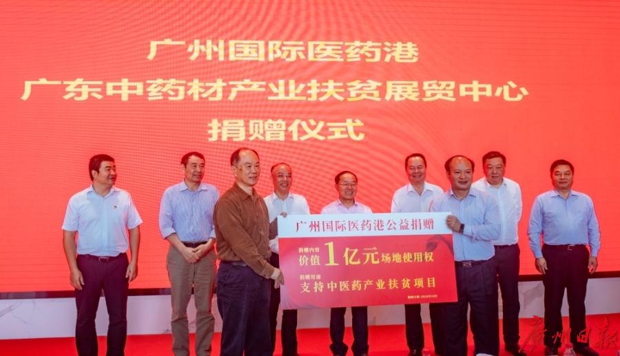 10月26日下午,广州国际医药港 “省域经济广州客厅”暨“广东中药材产业扶贫展贸中心”捐赠及揭牌仪式举行。记者获悉,为了帮助贫困地区优质中药材外销,助力产业扶贫,以大健康产业“新展贸”为重点的广州国际医药港,结合自身产业资源优势,捐助价值1亿元的场地使用权,打造全国中药材产业扶贫基地。
