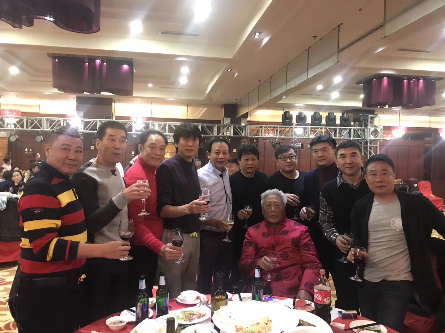 2017年高丰文78岁寿庆,昔日南北弟子到贺,左起:麦超、王军、孔国贤、董礼强、王宝山、唐尧东、段举、谷李瑾、马林、涂胜桥。