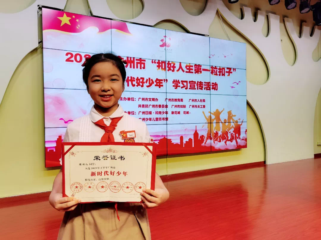 2020年广州市“扣好人生第一粒扣子”“新时代好少年”学习宣传活动上,天河区华阳小学五(3)中队队员陈炫儿被授予2020年广州市“新时代好少年”称号,她是天河区唯一获得此项荣誉的小学生。