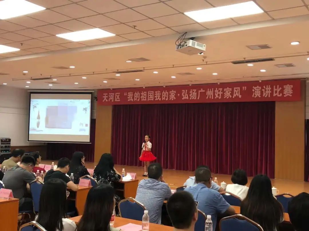 国外的行程紧锣密鼓地进行,另一边,天河区“我的祖国我的家·弘扬好家风”的演讲比赛也在同步开展。为了能够兼顾两个活动,别的小伙伴在飞机上昏昏欲睡的时候,陈炫儿则要打起精神来背稿,还需要在稿件中融入自己的情感处理。虽然备赛阶段父母都不在身边,但她也能很快地调整好自己的心态,积极备赛。功夫不负有心人 ,她一路过关斩将,最后将天河区特等奖的荣誉收入囊中。
