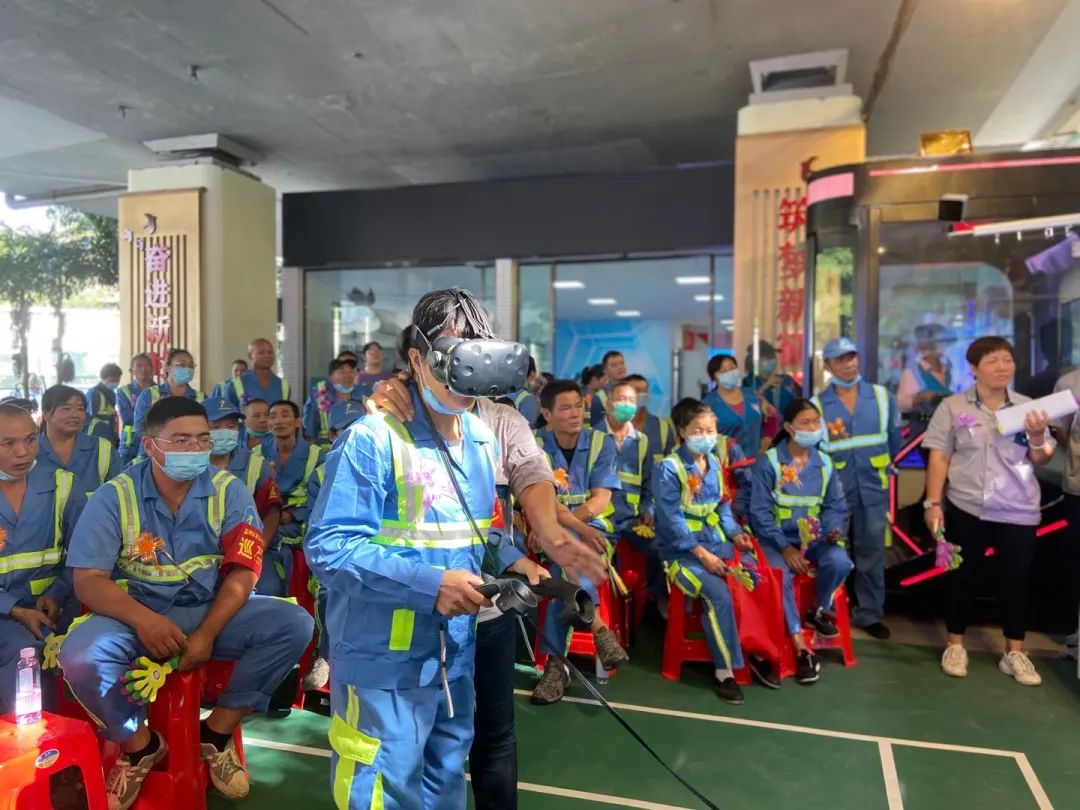 走进活动现场,e家君看到环卫工人们集中在大屏幕前通过手机扫码进行签到。据了解,此次活动邀请了石围塘街辖内近180名环卫工人参与。除了传统的游戏、表演,环卫站还利用站内的VR游戏,让环卫工人们在游戏中学习了垃圾分类、消防等知识。同时环卫站利用微信扫码小游戏,让到场的环卫工人们都能参与到游戏中。