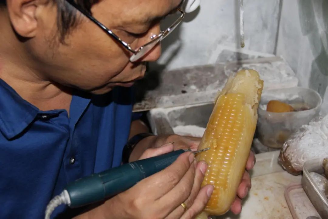 刘钜华制作玉米雕《金珠玉叶》